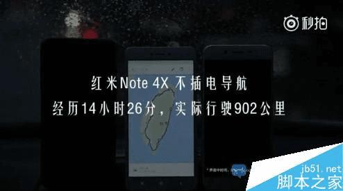 原来,为了验证红米Note 4X的超长续航能力,小米进行了一次疯狂的挑战:带着4100mAh超大电量的红米Note 4X,不插电导航,台湾环岛了一圈。与此同时,还找来了iPhone 7 Plus(2900mAh)和OPPO R9s(3010mAh)两款手机进行同场对比。