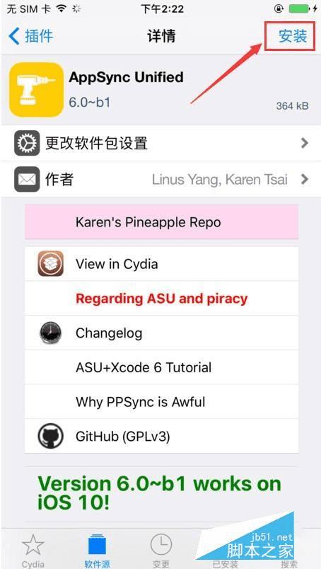 当我们的iOS设备越狱后,如果想安装、运行破解应用的话必须要安装AppSync,目前AppSync已经支持最新的iOS10及以上越狱设备,可放心安装;下面小编就教教大家如何在Cydia里面手动安装。