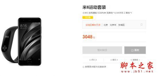 米6运动套装包括小米6全网通版 亮黑色*1,小米手环2黑色*1,048元。