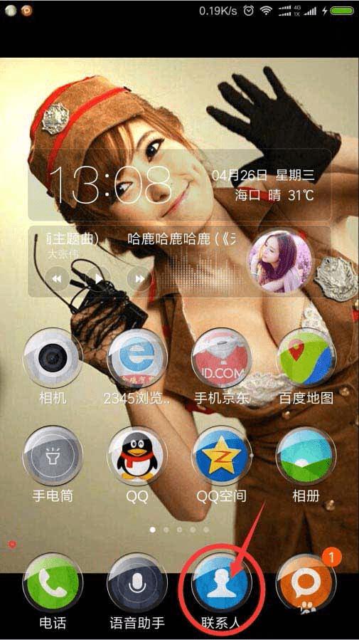1、下面我们开始设置,先在操作界面中找到联系人。