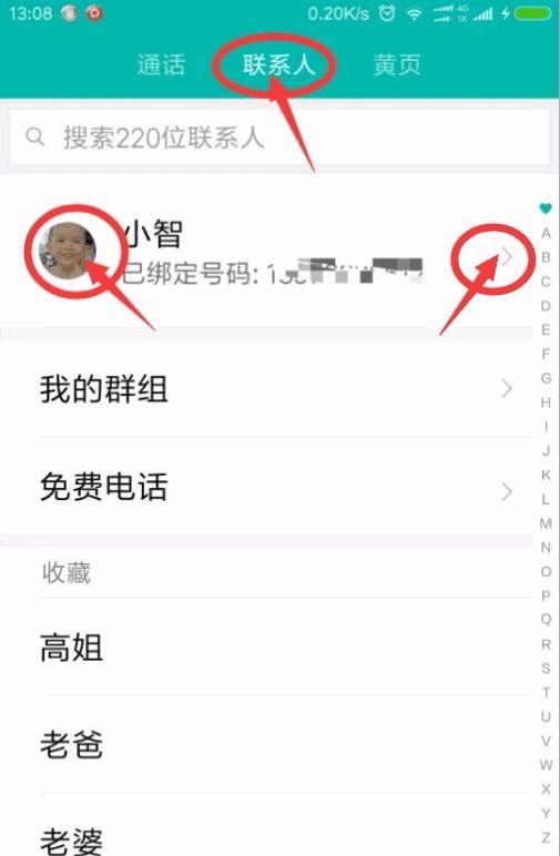 2、我们在联系人中可以通过两种方式点开编辑界面:点左边的已有头像。如果还没有头像的就点右边的>符号。
