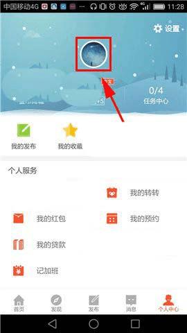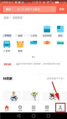 1)首先先打开【58同城】的界面,然后我们再点击右下角的【个人中心】,打开后接着点击【头像】。(如下图)