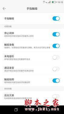 在FAST系统的指纹录入界面,除了能够正常的录入指纹之外,还增加了手指触碰功能的设置选项,在开启手指触碰功能后用户可以通过指纹识别来实现停止闹钟、触碰录像、来电接听等等功能。
