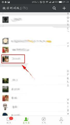 1)首先,我们先打开微信点击进入【通讯录】,接着找到要查看的好友【点击】。(如下图)