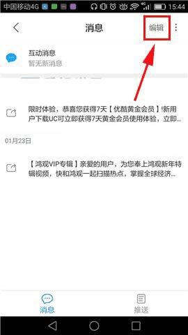 在优酷视频app中删除推送的消息的方法