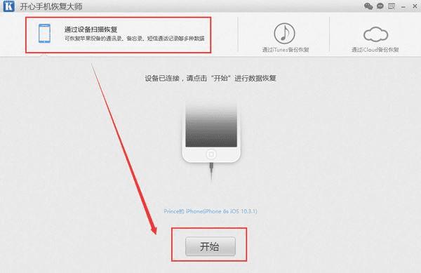 首先先给大家带来苹果设备的微信聊天记录恢复方法,我们需要准备如下工具:苹果设备一台,苹果数据线一根,电脑一台以及开心手机恢复大师(官网:http://www.kxbox.com/)。