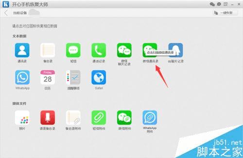 点击“开始”之后,软件就进入到数据恢复的主界面了,界面上显示的17种数据项图标对应的数据:微信聊天记录、短信、备忘录、通讯录、照片等均支持恢复。苹果手机怎么恢复微信删除的好友?我们点击“微信通讯录”图标。如果我们要恢复删除的微信聊天记录,点击“微信聊天记录”图标。
