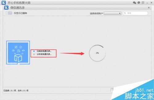 然后就会进入到扫描阶段了。扫描大概需要5分钟。这是恢复微信删除好友信息最重要的一步。此阶段保持手机与电脑的稳定连接。