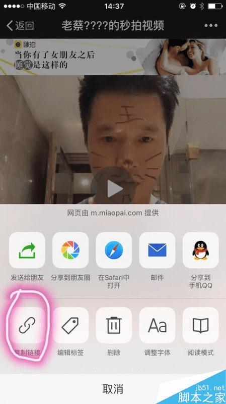 1. 先在手机上打开秒拍视频,如图复制链接,到360浏览器里打开。