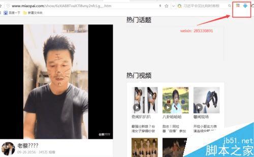 4. 重新刷新一下,最先打开的秒拍视频,可以看到右上角多了个蓝色的图标。如下图一。 点开蓝色下载图标,会看到以下图二,你可先任意类型文件格式保存,建议是MP4格式通用性强。如还有不明白的下图有我WEIXIN。