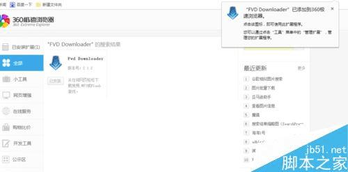3。在上图三的搜索框里输入”FVD Downloader “在360 浏览器的应用商店找到这个插件。搜出来之后点击”添加“--”安装“。