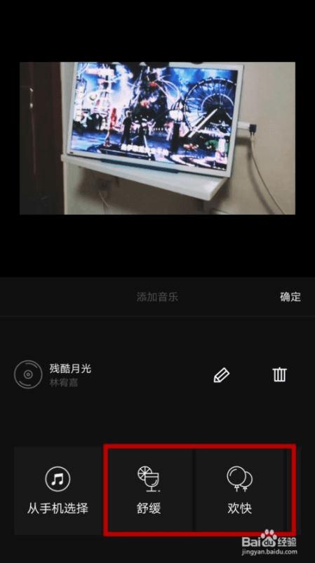 之后我们可以看到音乐的名称,傍边的功能可以编辑音乐或删除音乐重新添加,如果添加的音乐没有问题的话,我们点击如图所示的“确定”,即可将音乐天添加到vue视频中,vue添加音乐成功。