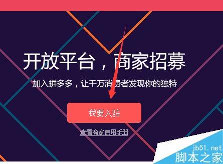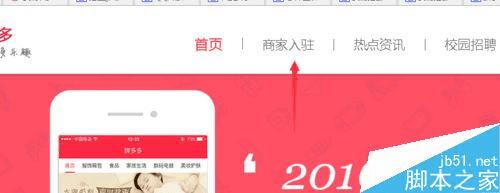 先打开拼多多的官网,进入网站首页以后,找到“商户入驻”点击进去