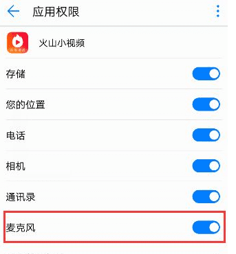 2、在权限管理中选择火山小视频该应用,然后即可看到麦克风的权限;