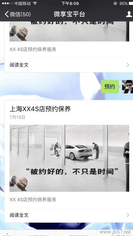 第六步:回复你刚才设置的活动关键词,系统就会弹出来你做好的内容来,点进去就可以参与了。粉丝在手机上填写的内容在制作的后台都是有记录的,可以利用微信模板消息,粉丝预约了以后就会有提示的