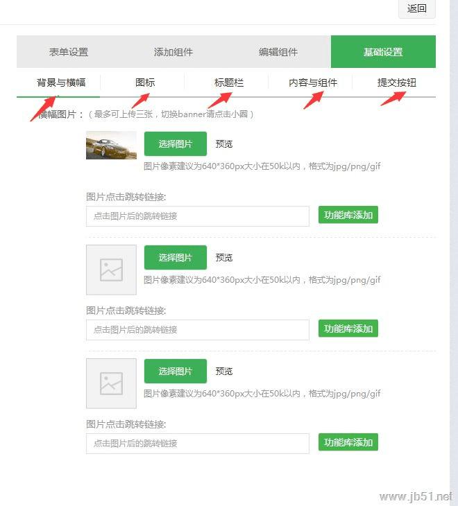 第五步:点击基础设置这一项,可以对背景、图标、标题栏等内容进行设置修改,包括里面的字体、颜色、大孝位置等内容。每一项都设置好以后点击保存按钮。