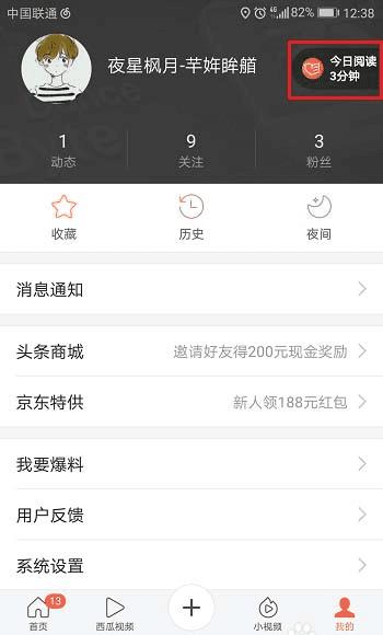 1、在我们的手机里面打开app,并登录账号进去主界面,选择今日阅读几分钟,如下图所示: