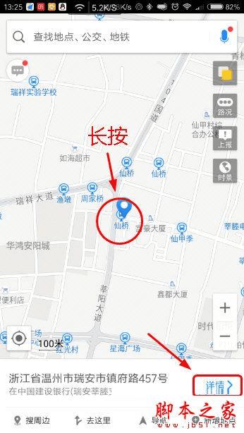 1、打开手机高德地图,长按你想要发送的地点,然后点右下角的详情。