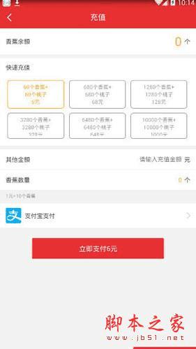 2、大家可以自定义充值金额,也可以根据系统给出的桃子+香蕉比例进行快速充值。在这里,1元=10个香蕉。可以根据自己的经济实力来进行购买礼物。