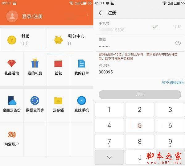 如果还没有Flyme账号,使用手机注册一个即可,如图所示。