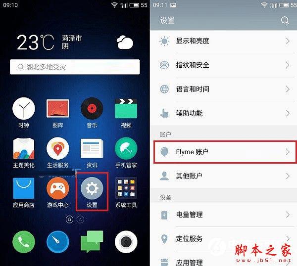 一.从魅蓝6系统桌面依次点击进入「设置」-「Flyme账户」,然后使用Flyme账号登录,如图。