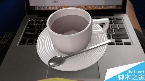 个人把一个杯子放置到了键盘上,看上去给人的效果还是蛮逼真的,还可以跟着设备摄像头的推进,拉远显示不同的效果。