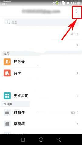 1)打开QQ邮箱APP,首先点击首页右上角处的【三竖点】图标,然后进入【设置】;(如下图)