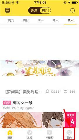 1)点开快看漫画APP,首先点击首页右下方的【我的】,然后上滑界面进入【设置】;(如下图)