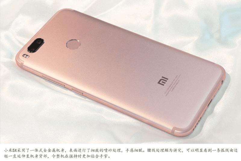 外形方面,小米5X采用了家族化的外形设计,不同的是,光线距离传感器不再呈对称排列,而是布局在听筒左侧,指纹采用了后置设计,配色方面有粉色、金色和黑色三款可眩
