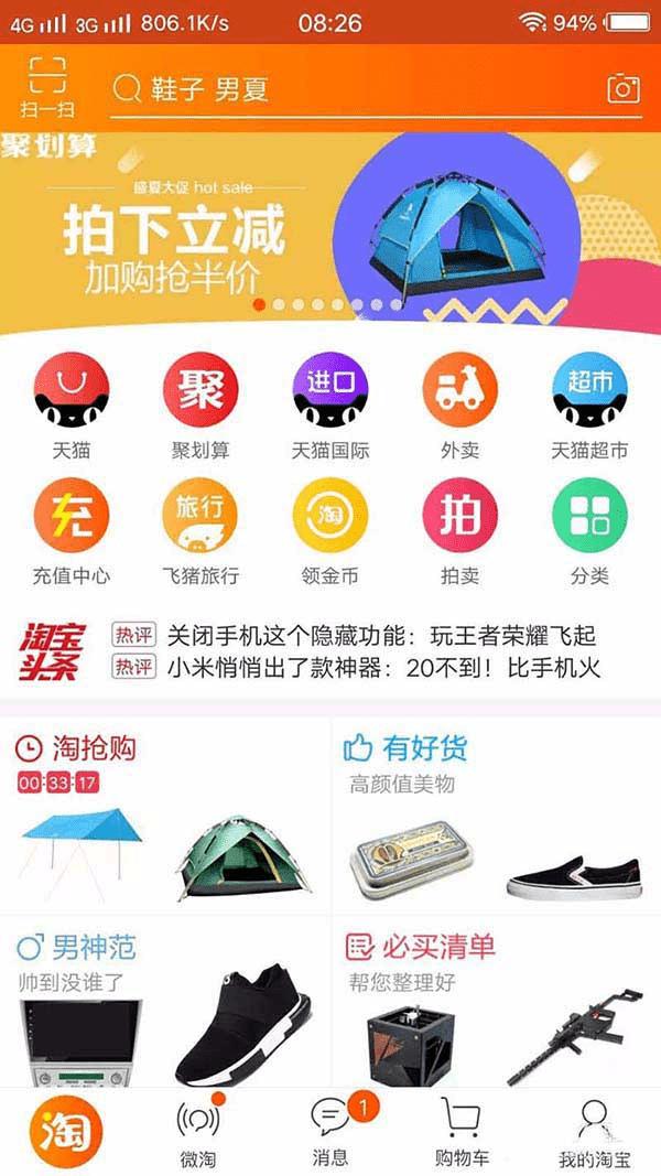1、打开淘宝,选择要买的鞋,进行搜索,如图