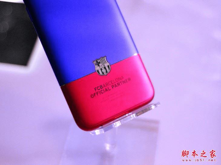 当我有机会真正把这款全新限量版手机拿在手里的时候,则是感受到了第二次的惊艳。在红蓝配色接合的地方,还有一枚18K金的巴萨队徽作为点缀,而且这个队徽是跃然于一条非常细小的切割线之上。据悉这条切割线可不仅仅是为了让红蓝两个颜色分割开,更重要的是可以避免机身在阳极氧化着色过程中所产生的毛刺干,让背部的手感更加的顺滑,而且这条细线仅仅有0.4mm宽,0.1mm厚。如果更形象一点表述的话,那就是4根头发丝宽度和一根头发丝的厚度。