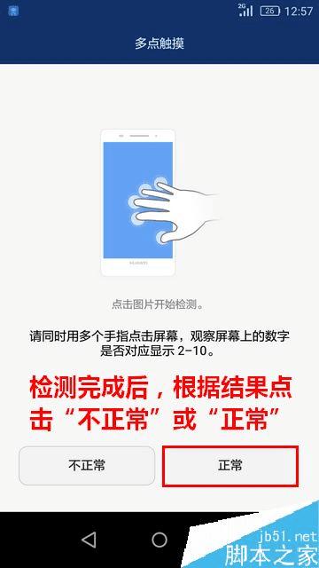 打开多点触摸检测界面后,在屏幕中部会出现检测方法提示,看完后便可以点击上方的图片开始检测了。