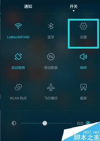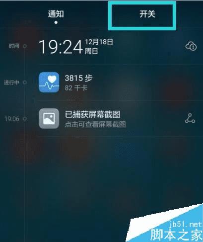 滑出手机的通知栏,点击“开关”。