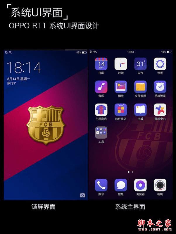 OPPOR11巴萨限量版采用了基于Android7.1.1的ColorOS3.1,不过前文已经提到,它采用了独家定制的巴萨主题,与正常版相比系统图标进行了重绘。同时主题、配色,壁纸等都深度定制,配合深度定制的设计。