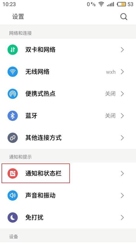 1、首先进入到系统设置,在设置页面下方找到并点击进入到【通知和状态栏】页面,如图所示。