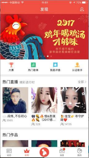二:在登录后的个人页面中,找到下方的“发现”选项,然后用手点击一下,往下拉一些,我们就会发现这里有很多全民k歌家族,根据排行,大家选择一个自己喜欢的家族。