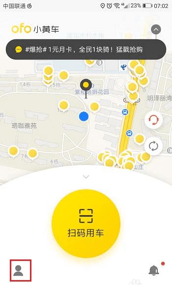 在ofo共享单车app中查看剩余免费骑行天数的方法