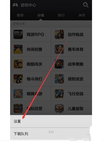 3、点击【设置】进入设置界面;