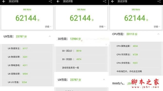 魅蓝Note6搭载的是高通骁龙625八核处理器,但配备的是3GB/4GB运行内存和16GB/32GB/64GB存储空间,通过安兔兔软件测试,跑分如下。