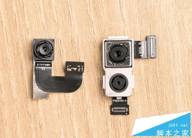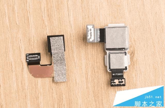 分离后置摄像头的主摄像头连接器,可以发现主摄像头要比辅助摄像头更高一些。