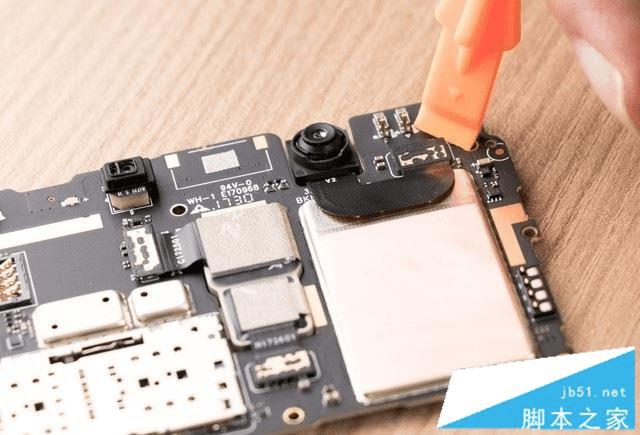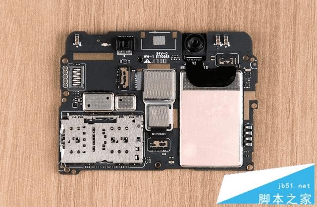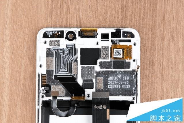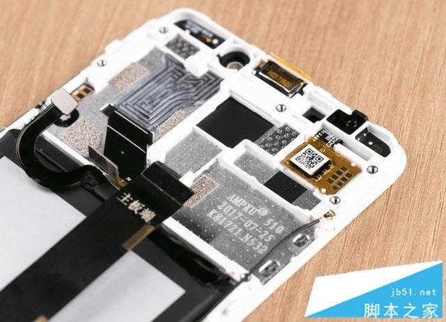 机身上的主板对应位置可以看到该机采用不锈钢材质防滚架,这种材质相比镁铝合金能做的更薄,但不好铸型,所以为了节约成本,魅蓝采用注塑方式构筑了机器的整体框架。可以看出在主摄像头对应位置挖出一个大洞,三星的S系列手机也采用同样的方式解决摄像头凸起问题。由此可以看出两点,首先是这枚后置主摄像头体积真的不小,另外也可以看出魅蓝在这款手机的轻薄化设计上是上了心的。