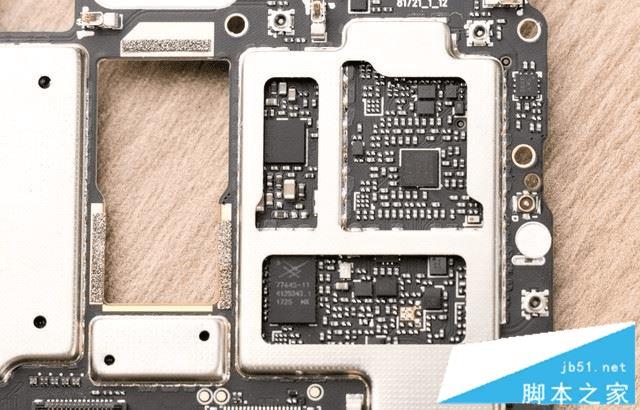 在另一边的屏蔽罩下面藏着射频放大芯片,以及电源管理芯片。