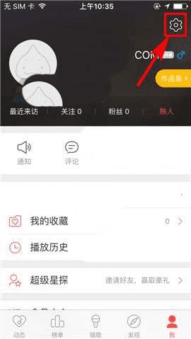 1)点开唱吧APP,首先点击动态界面右下角处的【我】,随后点击右上方的【设置】图标;(如下图)