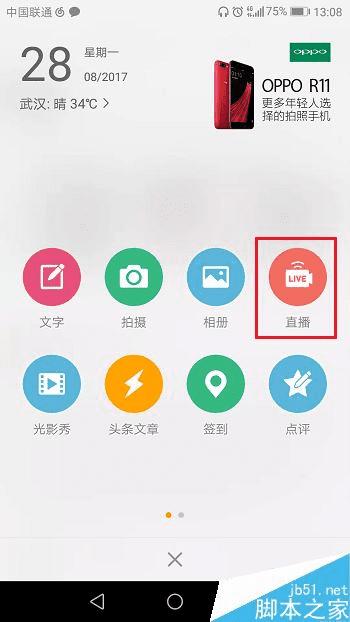 第三步在弹出框之后,选择“直播”,如下图所示: