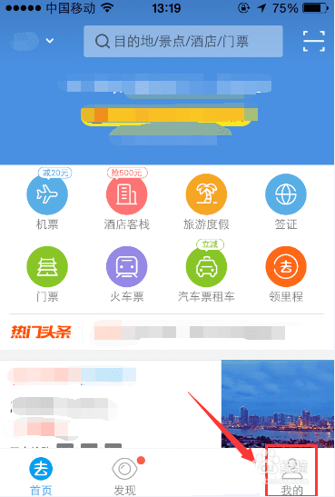 1、首先我们点击阿里旅行APP软件,然后在其主页面点击“我的”图标,之后登录自己的阿里旅行的帐号即可。