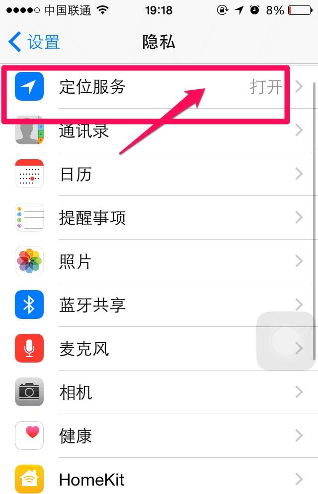 5、再点击定位服务。