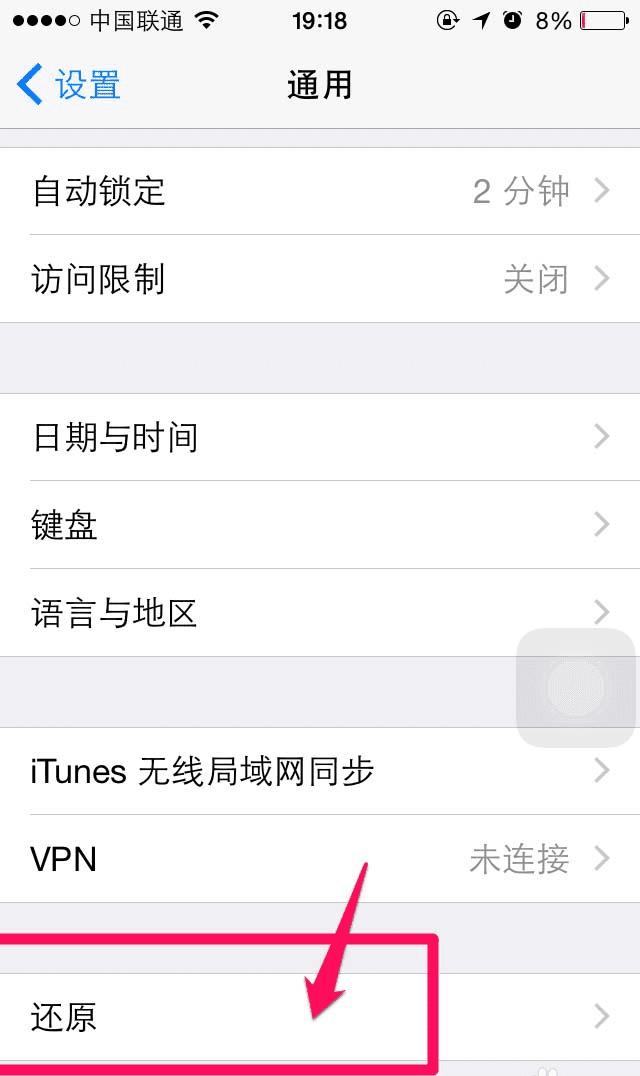 2、进入到通用设置,拉到最下面,选择还原。