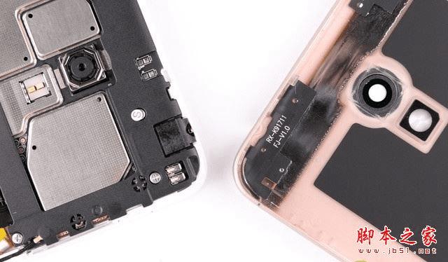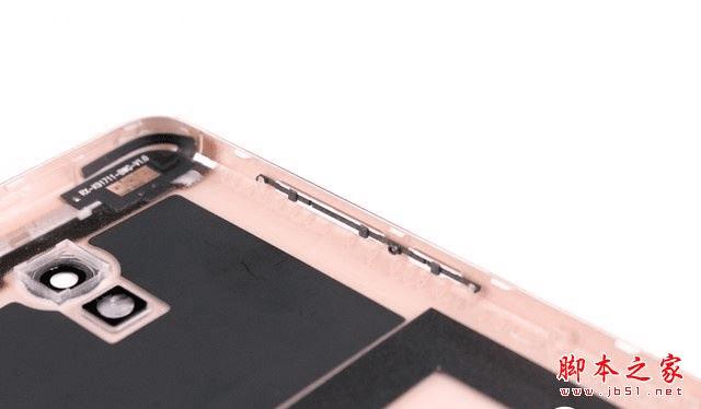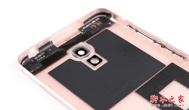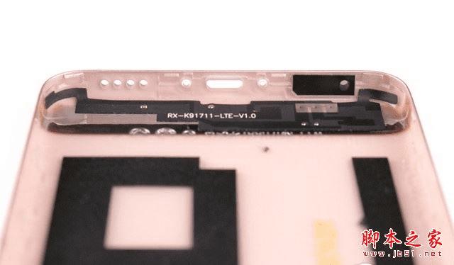 背壳上下两端设计有三个天线区。主板部位还贴有石墨散热贴