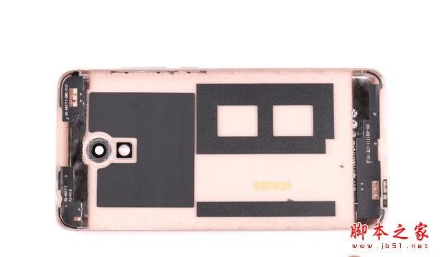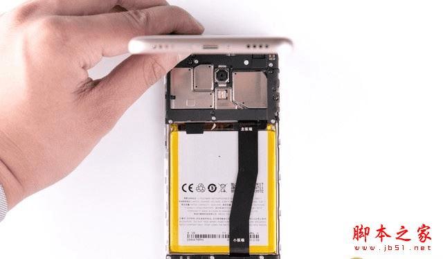 魅蓝6结构设计并不复杂,背壳通过螺丝和卡扣固定,由于背壳为聚碳酸酯材质,柔韧性强,较为容易分离。机身内部采用三段式设计,元件的集成度较高,电池有一半为拉胶固定,所以综合评定该机的拆解较为容易。