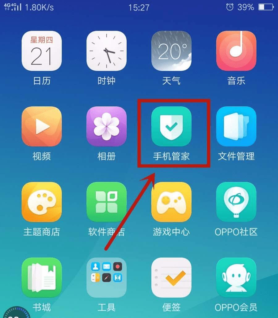 1、OPPOr9s手机关闭悬浮窗,在手机自带的“手机管家”即可管理绝大多数软件的悬浮窗。首先,打开OPPOr9s自带“手机管家”,如图红方框所示